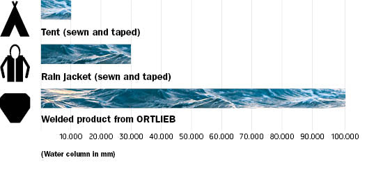 The hydrostatic head: ORTLIEB vs. other waterproof products